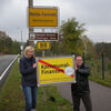 Mit einem Plakat in Form eines Ortseingangsschildes protestierten gestern die Landtagsabgeordnete Sabine Doht mit dem Bürgermeister der Gemeinde Wutha-Farnroda, Torsten Gieß, gegen die Kürzungen bei der Finanzausstattung der Kommunen.